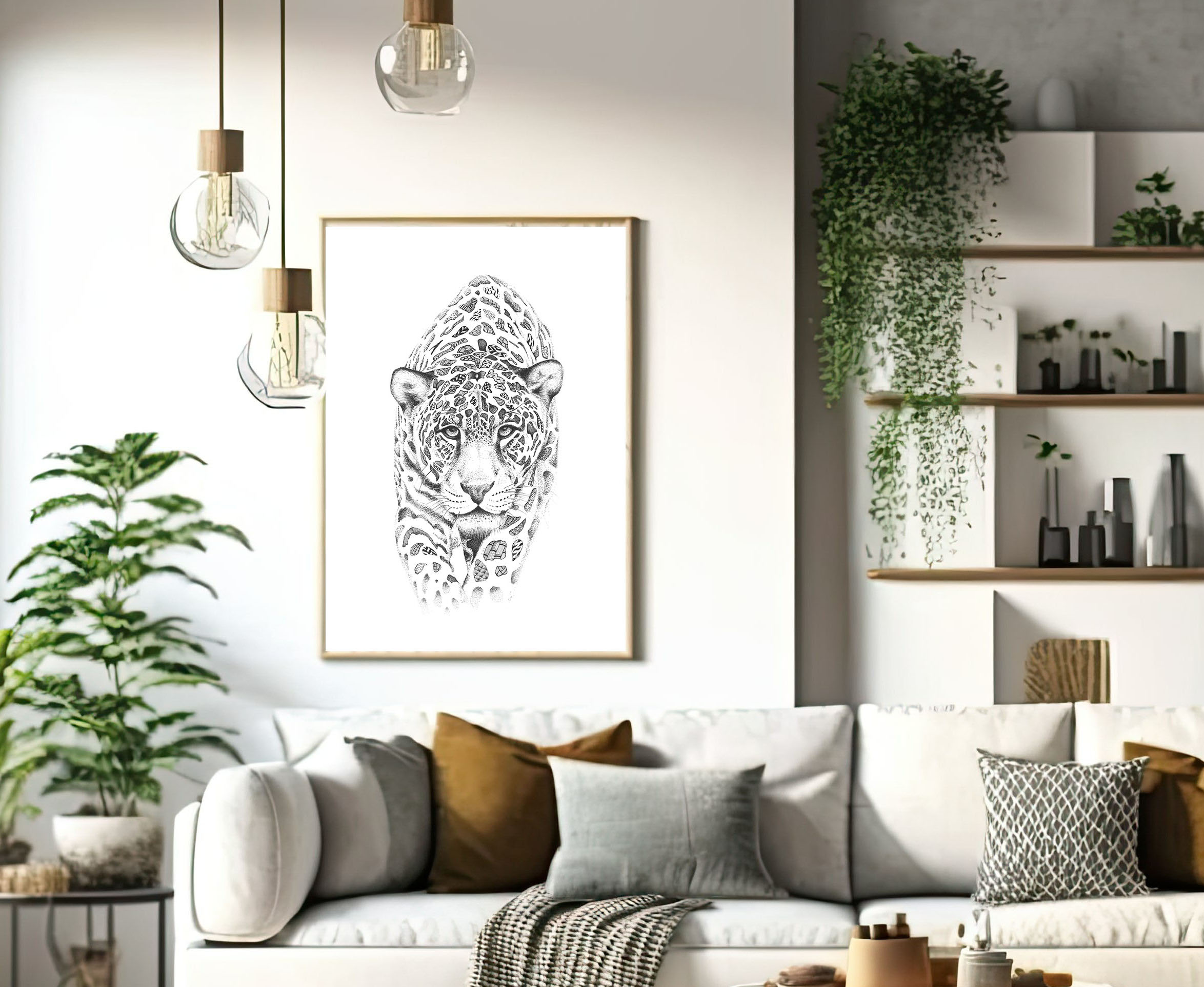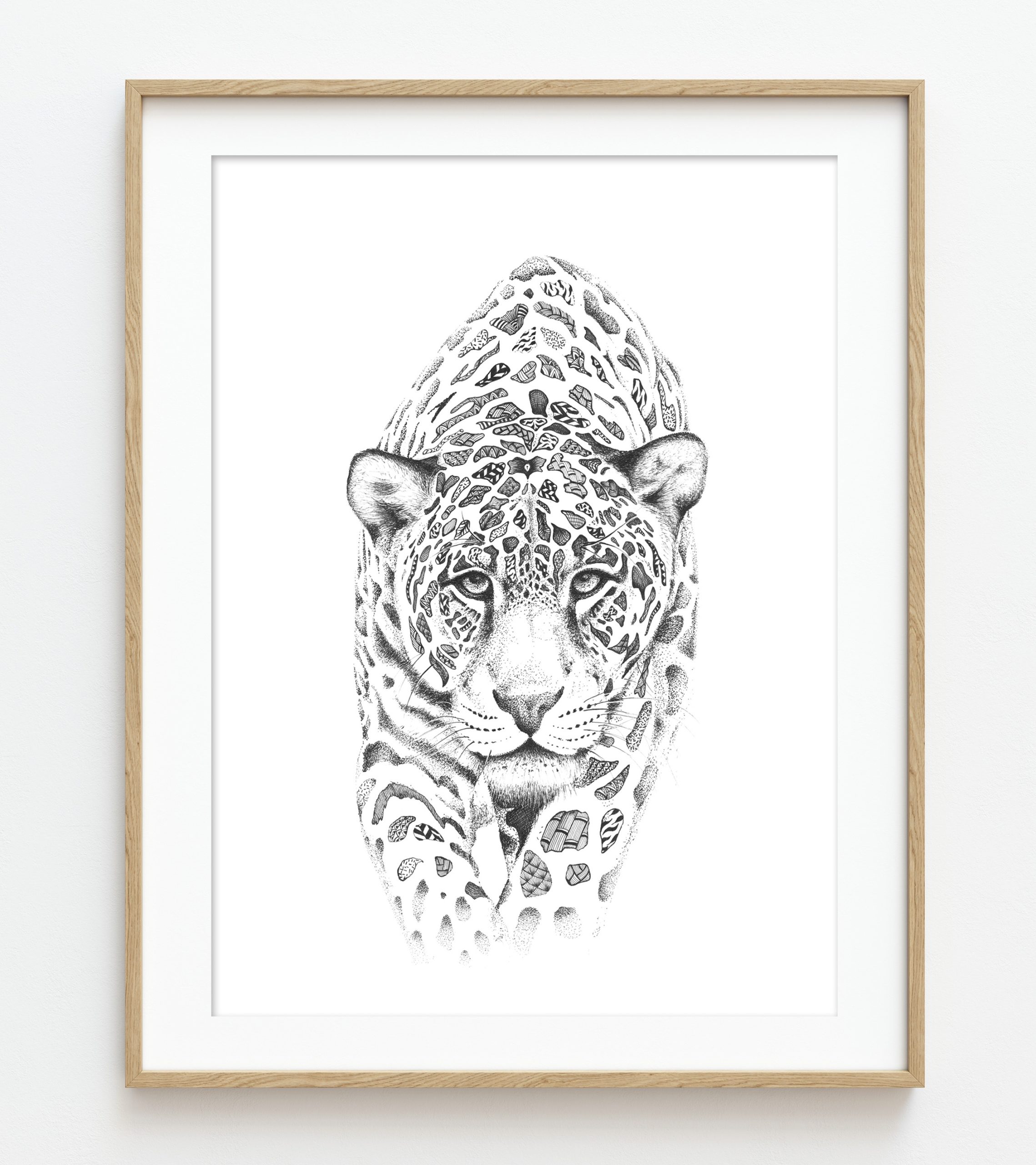 Leopard stalking in black Micron Pen on Fabriano Mixed media Paper 250g
